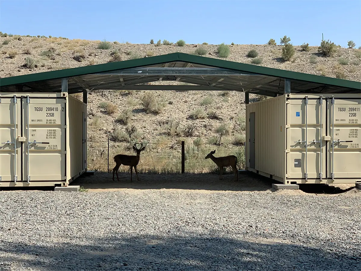 El sistema GB362 es de construcción rápida y sencilla. Hecho de acero mexicano premium. Cuenta con una longitud de 6 metros (20 pies) y se conecta fácilmente a dos contenedores de envío. La unión segura del techo a los puntos de anclaje generalmente elimina la necesidad de cimentación. Con dos opciones de acabado, estándar de galvalume acrílico o pintura color rojo. La instalación y los contenedores no están incluidos en el costo de los kits.