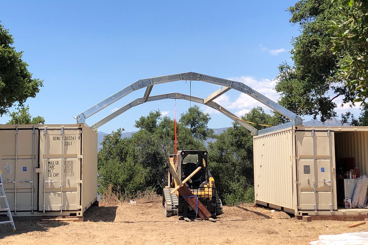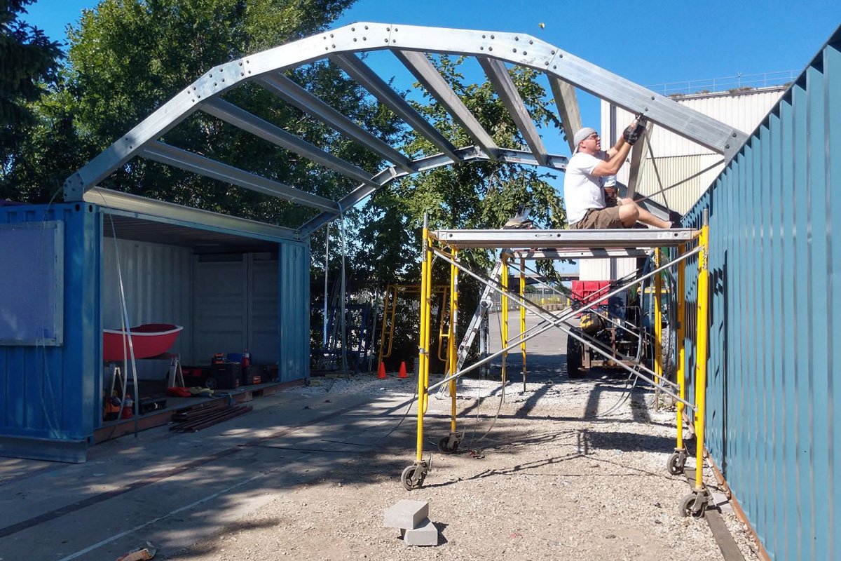 De tipo abuhardillado, montado internamente. Nuestros kits de techado exterior están fabricados con acero de calidad premium y diseñados para una construcción rápida y sencilla. Se adaptan perfectamente a dos contenedores de envío y pueden ser fácilmente combinados para crear estructuras más largas. Además, ofrecen versatilidad, ya que pueden desmontarse, transportarse y volver a ensamblarse con facilidad.